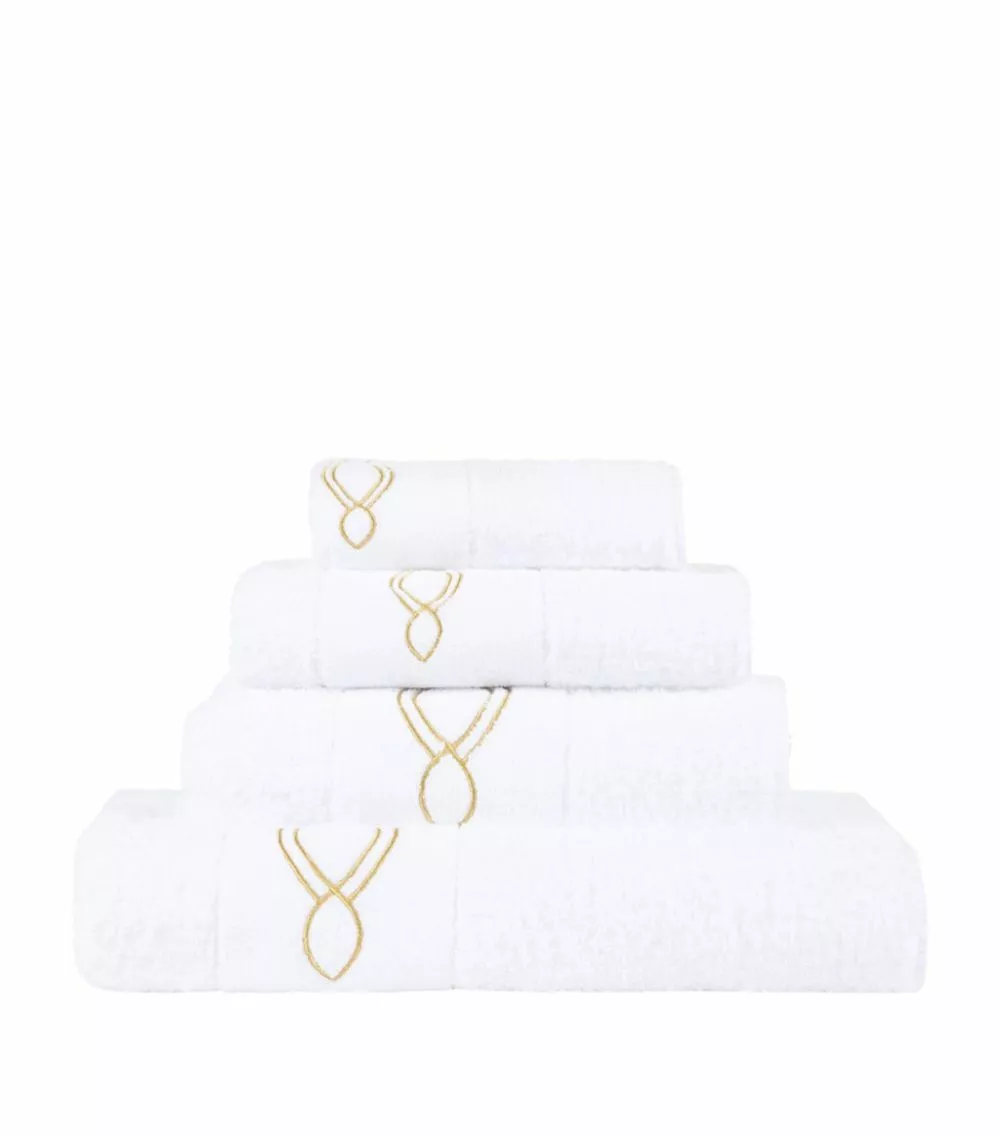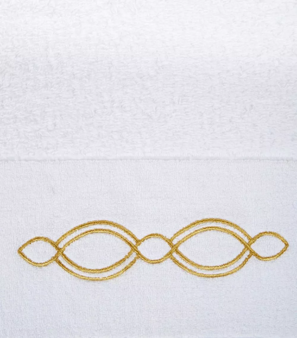 Crafted in plush white cotton, the Abyss & Habidecor Décor range is a sophisticated choice for your bathroom. Featuring a geometric design embroidered in gold thread, each towel is crafted from only the finest combed cotton for a super-soft and absorbent finish.