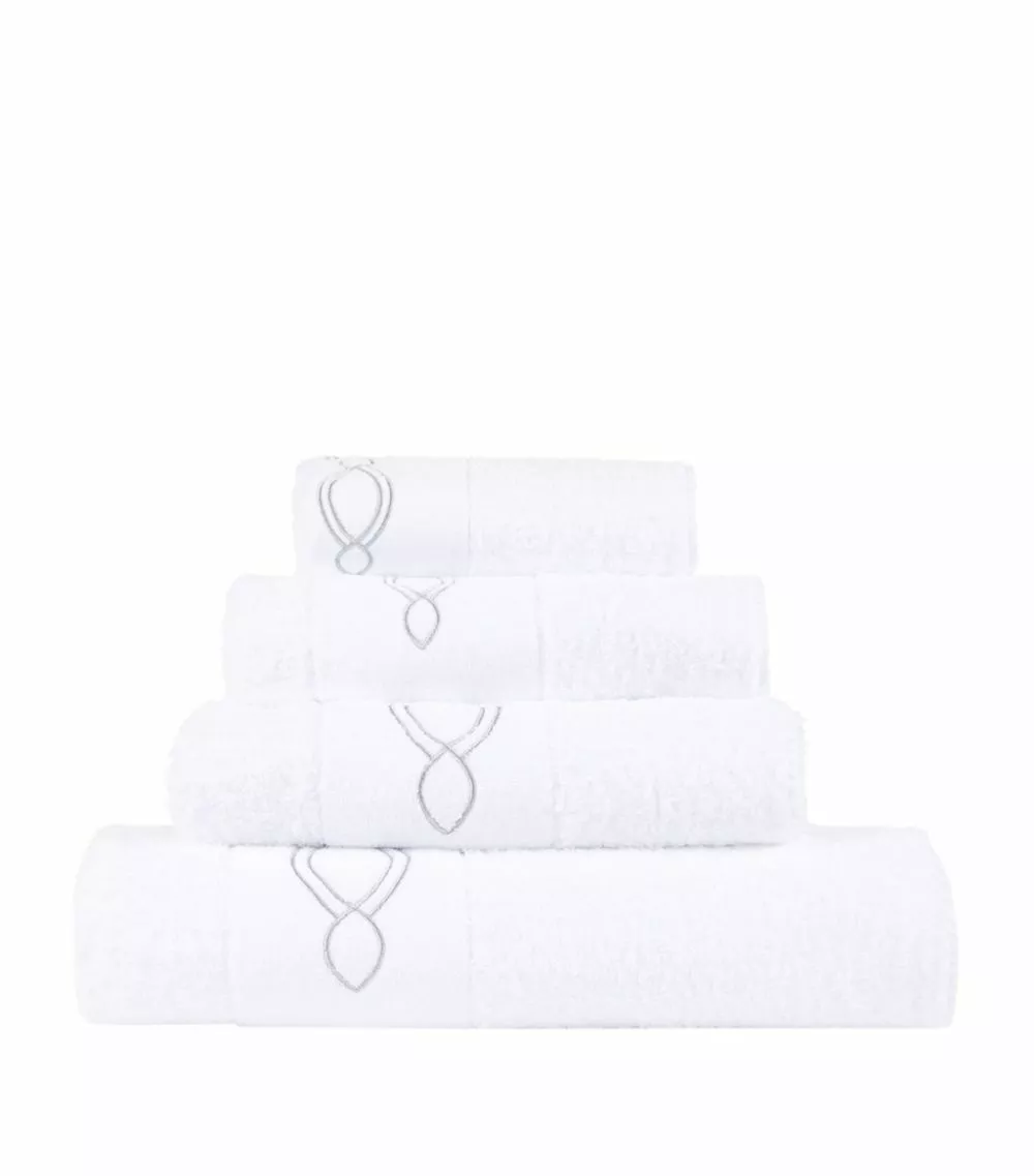 Crafted in plush white cotton, the Abyss & Habidecor Décor range is a sophisticated choice for your bathroom. Featuring a geometric design embroidered in silver thread, each towel is crafted from only the finest combed cotton for a super-soft and absorbent finish.