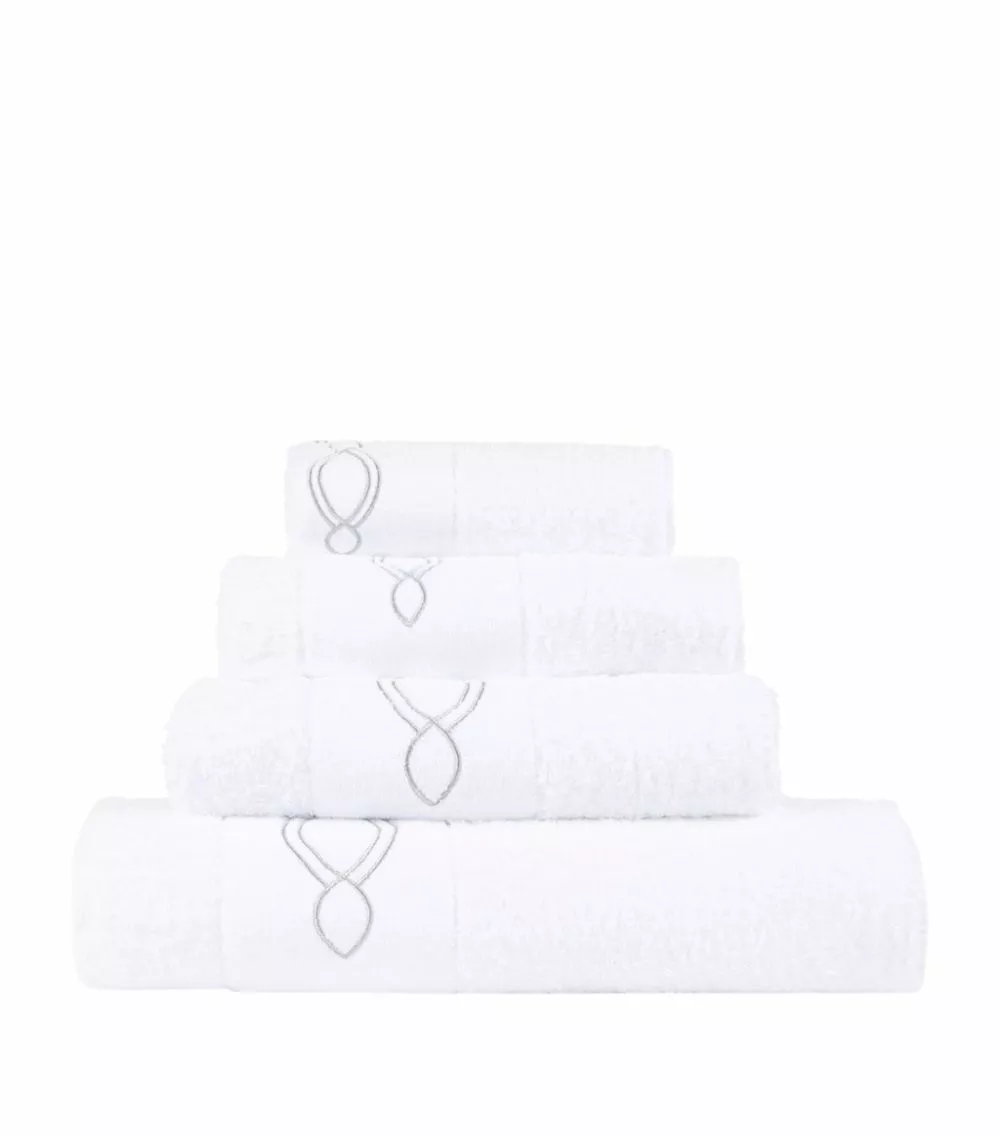 Crafted in plush white cotton, the Abyss & Habidecor Décor range is a sophisticated choice for your bathroom. Featuring a geometric design embroidered in silver thread, each towel is crafted from only the finest combed cotton for a super-soft and absorbent finish.
