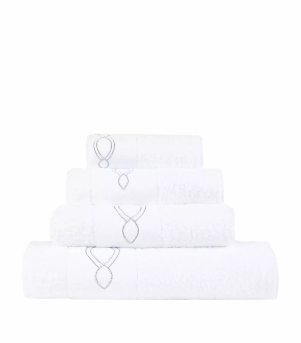 Crafted in plush white cotton, the Abyss & Habidecor Décor range is a sophisticated choice for your bathroom. Featuring a geometric design embroidered in silver thread, each towel is crafted from only the finest combed cotton for a super-soft and absorbent finish.