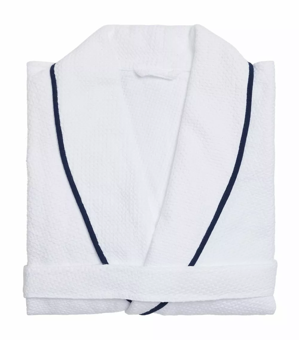 True to its name, Abyss & Habidecor’s Dream robe is the ultimate layer for luxuriating at home in plush softness. It’s woven from the label’s premium Egyptian cotton, sourced in Giza, while capturing spa-like minimalism with a clean white waffle-weave silhouette subtly trimmed with elegant navy piping.