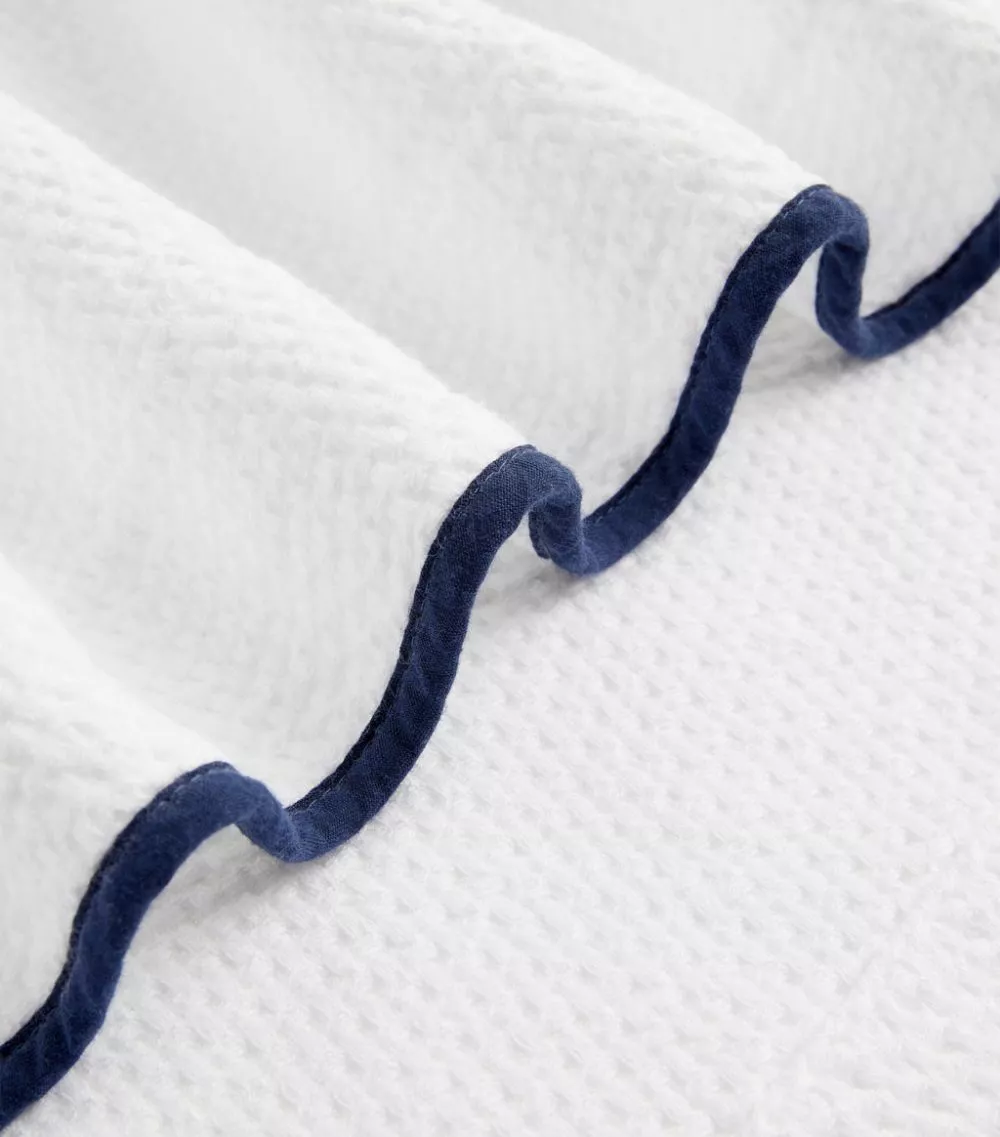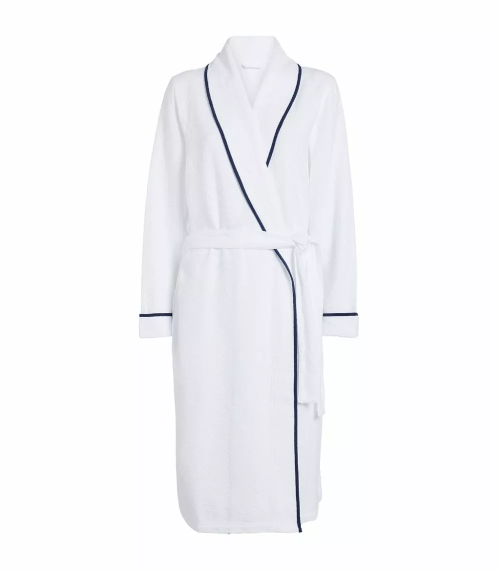 True to its name, Abyss & Habidecor’s Dream robe is the ultimate layer for luxuriating at home in plush softness. It’s woven from the label’s premium Egyptian cotton, sourced in Giza, while capturing spa-like minimalism with a clean white waffle-weave silhouette subtly trimmed with elegant navy piping.